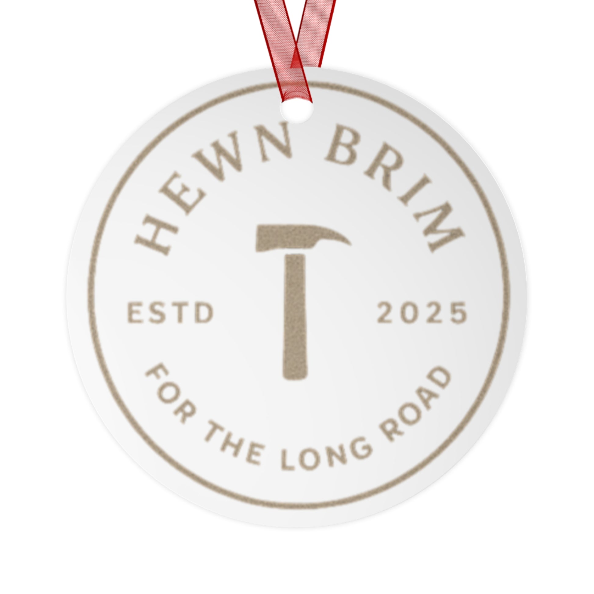 Hewn Brim Metal Ornament – Round Hammer Logo Holiday Keepsake (ESTD 2025)